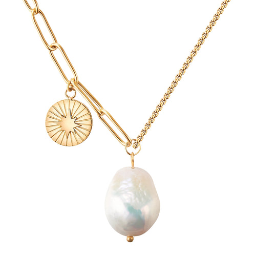 Kette Edelstahl gelbgold Süßwasser-Zuchtperle weiß