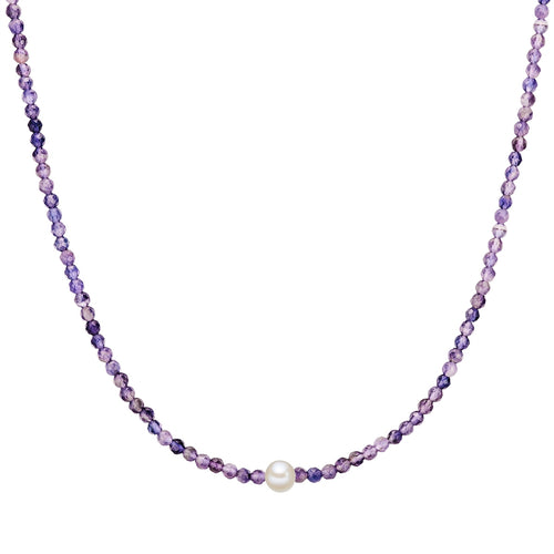 Kette Sterling Silber Süßwasser-Zuchtperle weiß Amethyst lila