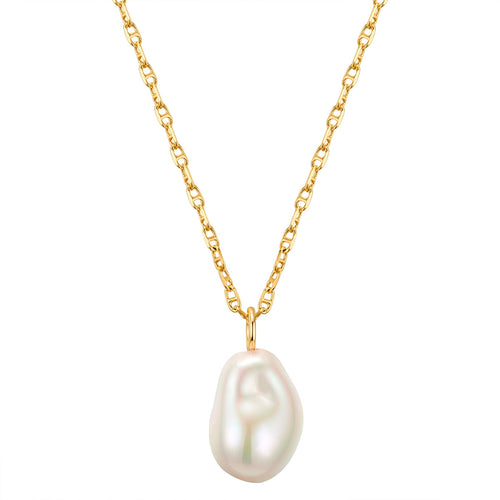 Kette mit Anhänger gelbgold Muschelkernperle weiß