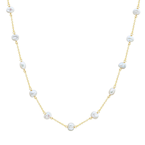 Kette Sterling Silber gelbgold Süßwasser-Zuchtperlen weiß