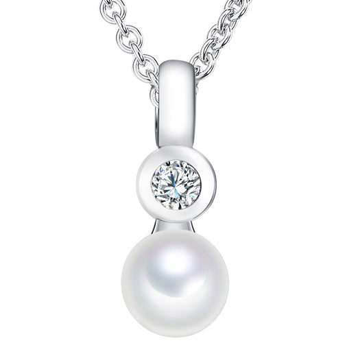 Kette mit Anhänger Sterling Silber Süßwasser-Zuchtperle weiß Zirkonia weiß