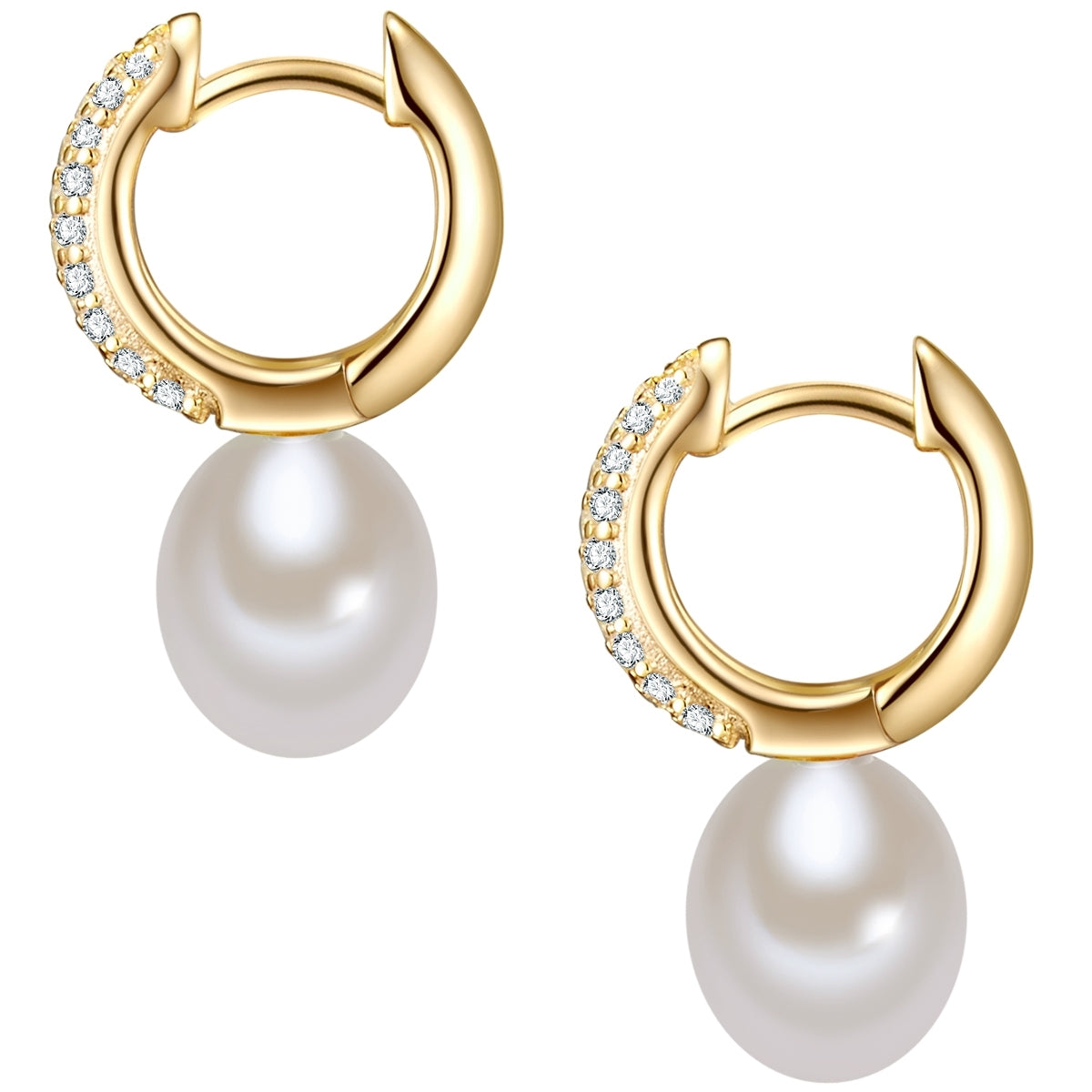Creolen Sterling Silber gelbgold Süßwasser-Zuchtperle weiß Zirkonia weiß
