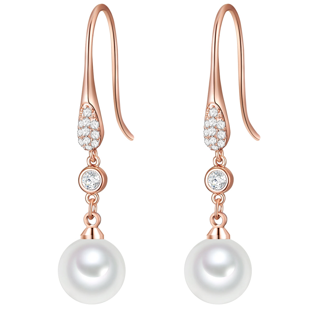 Ohrhänger roségold Muschelkernperle weiß Glaskristall weiß