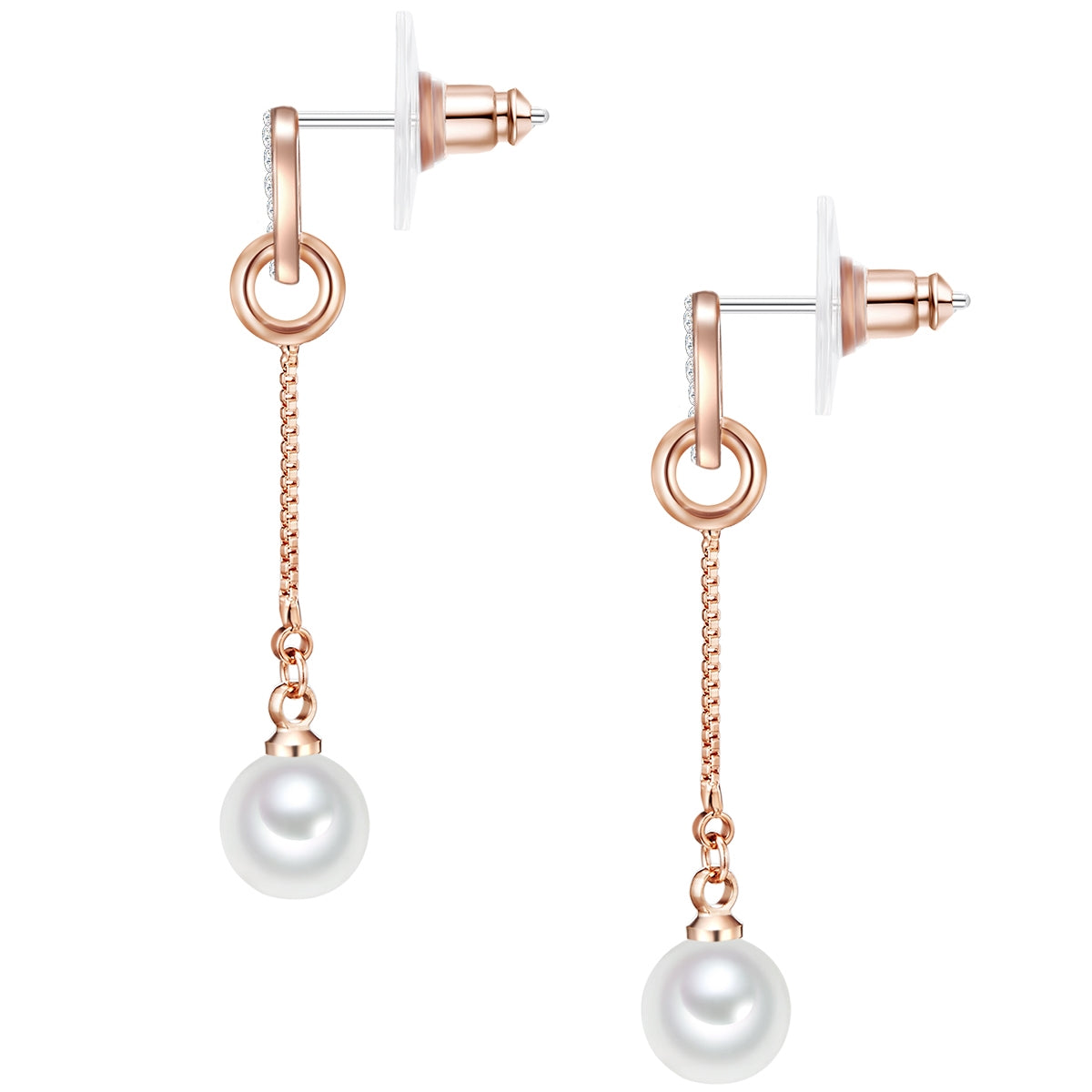 Ohrhänger roségold Muschelkernperle weiß Glaskristall weiß