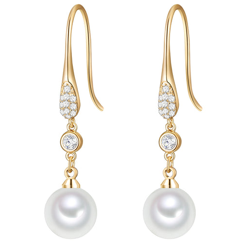 Ohrhänger gelbgold Süßwasser-Zuchtperle weiß