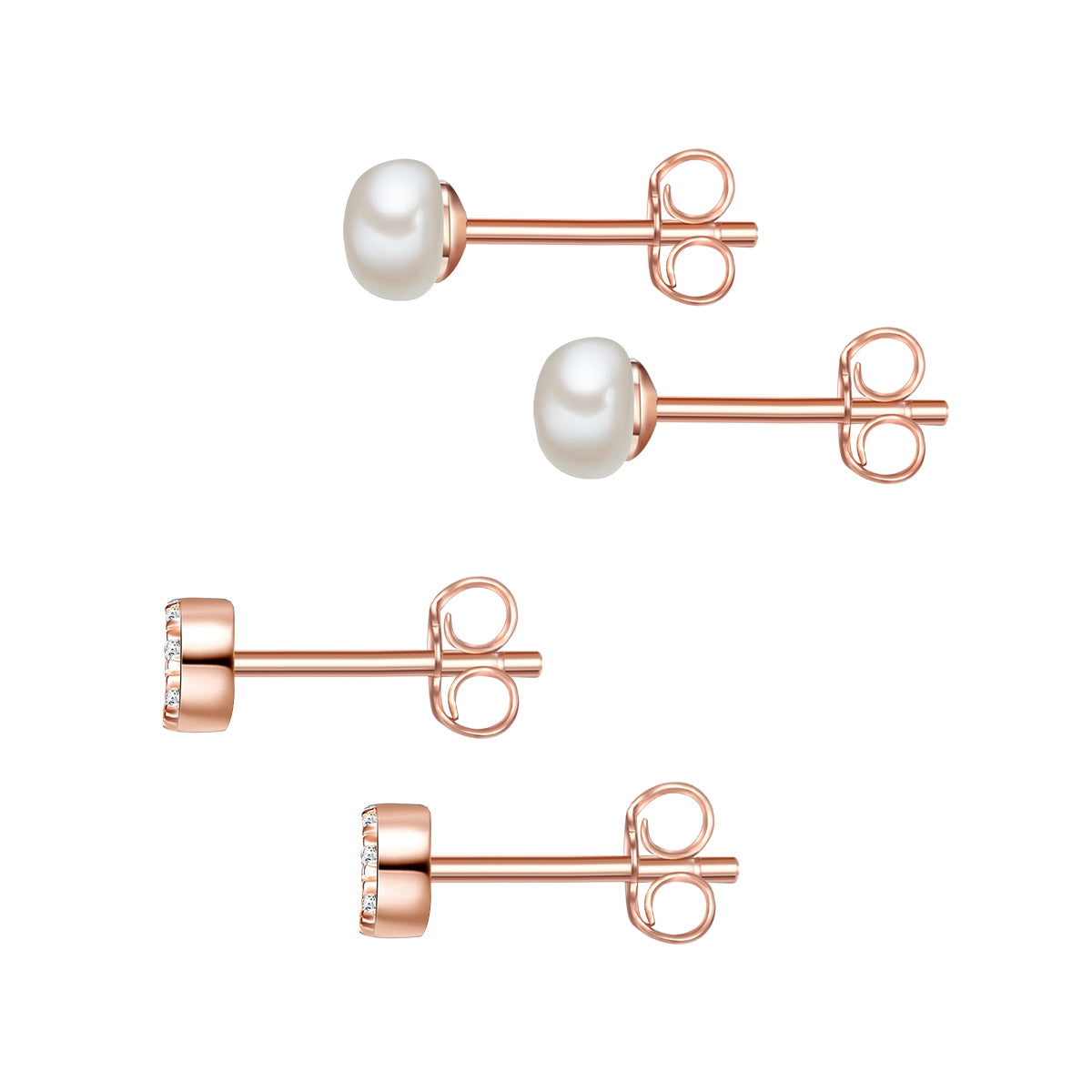 2er Set Ohrstecker Sterling Silber roségold Zirkonia weiß Süßwasser-Zuchtperle weiß