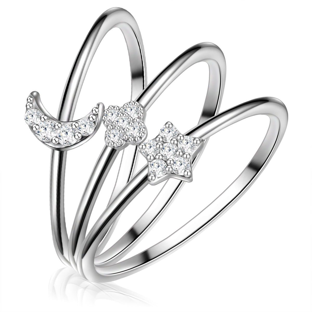 3er Set Ringe Sterling Silber Zirkonia weiß