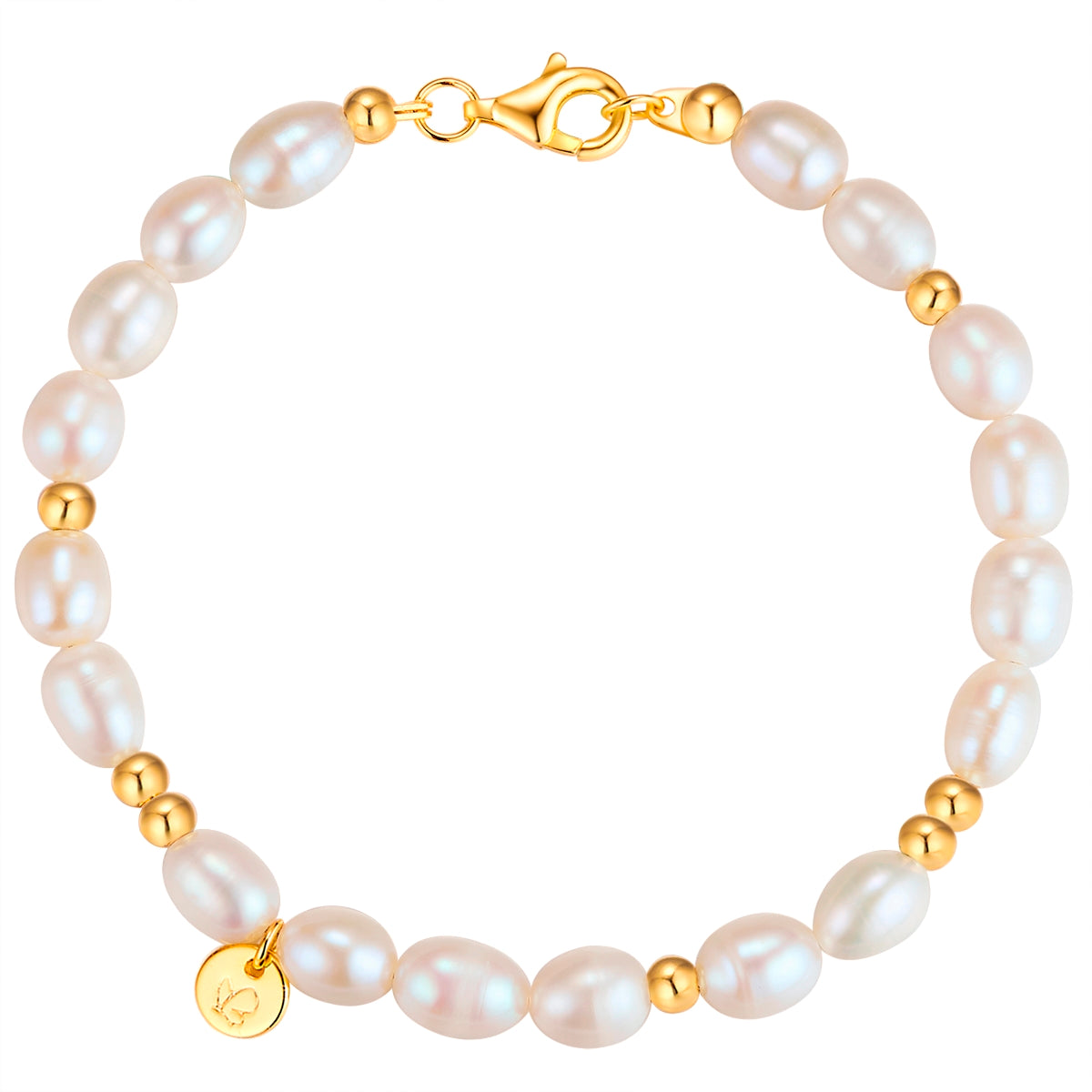 Armband Sterling Silber gelbgold Süßwasser-Zuchtperle weiß