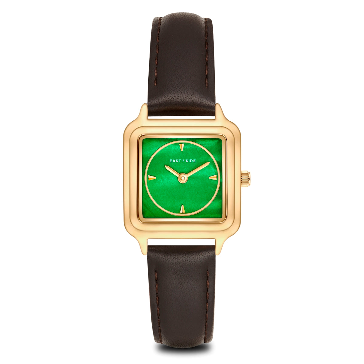 Damen Quarzuhr gelbgold Echtleder dunkelbraun