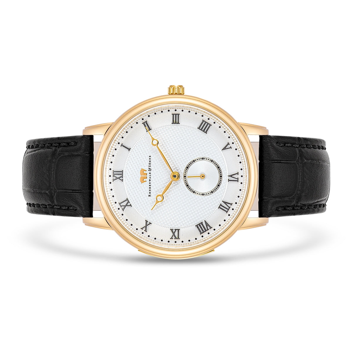 Herren Quarzuhr gelbgold Echtleder schwarz