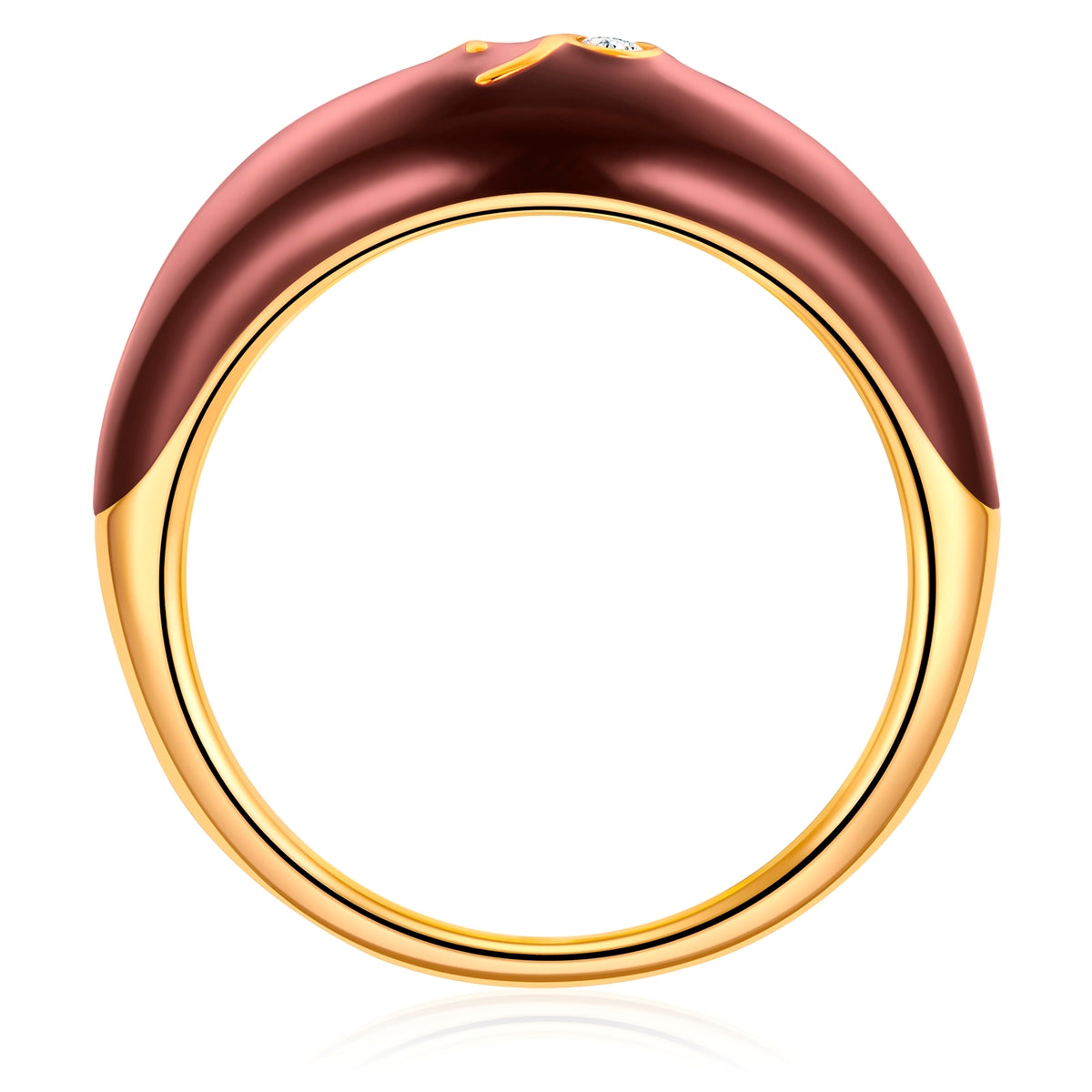 Ring Sterling Silber gelbgold Zirkonia weiß Emaille braun