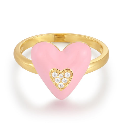 Ring Sterling Silber gelbgold Zirkonia weiß Emaille rosa