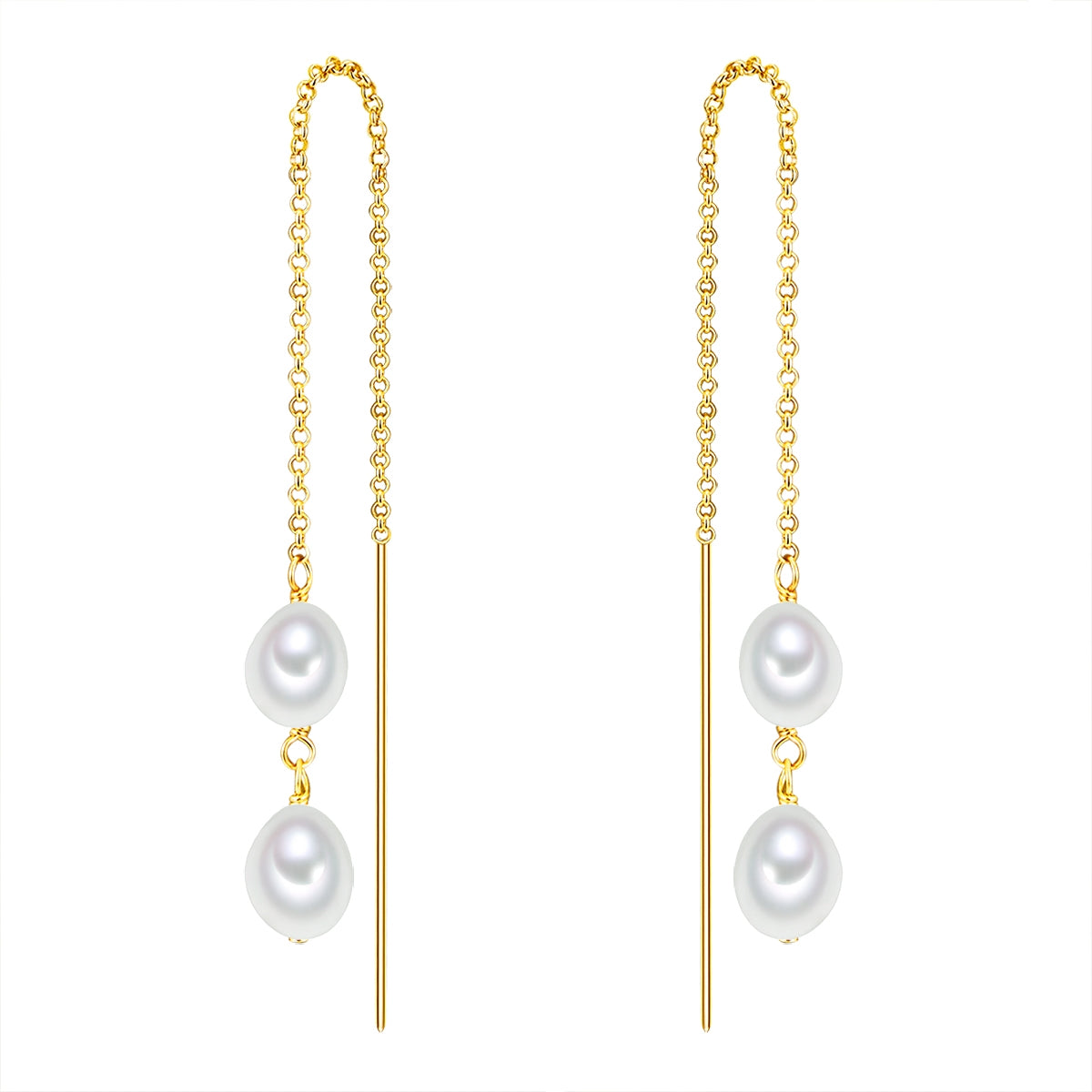 Ohrhänger Sterling Silber gelbgold Süßwasser-Zuchtperlen weiß