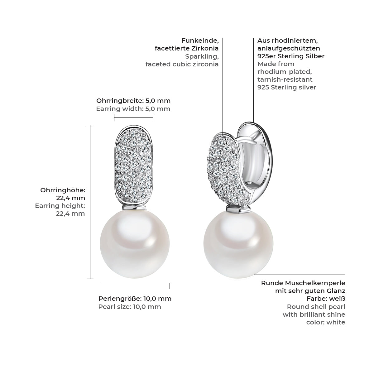 Ohrhänger Sterling Silber Südsee-Muschelkernperle weiß Zirkonia weiß