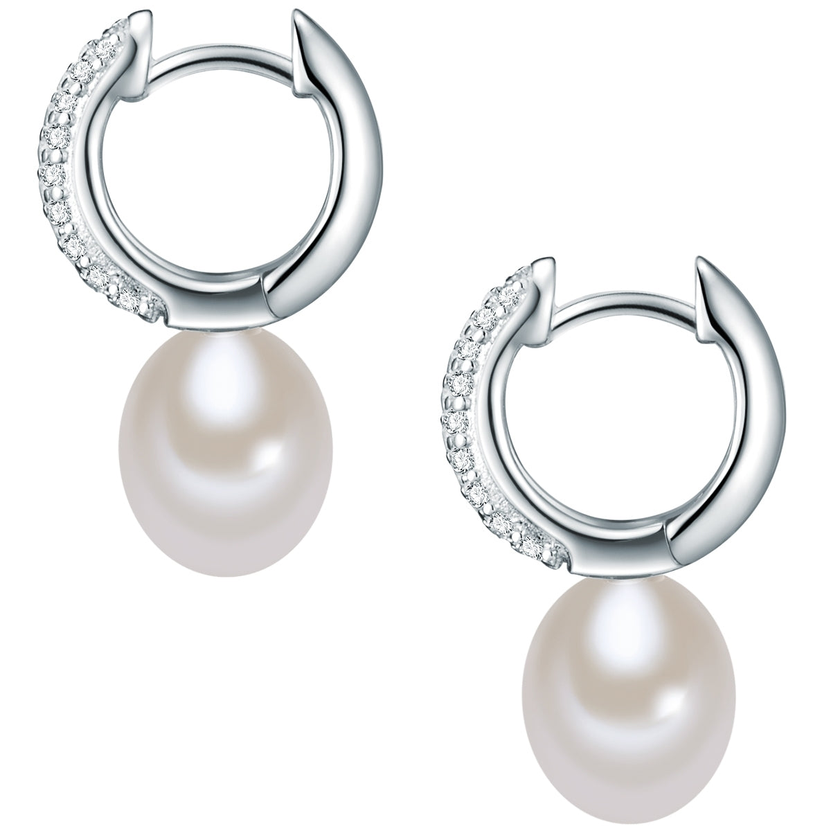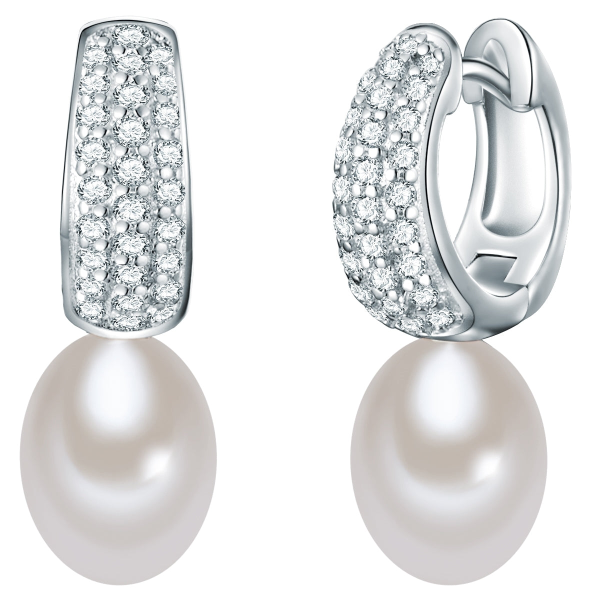 Ohrhänger Sterling Silber Süßwasser-Zuchtperle weiß Zirkonia weiß