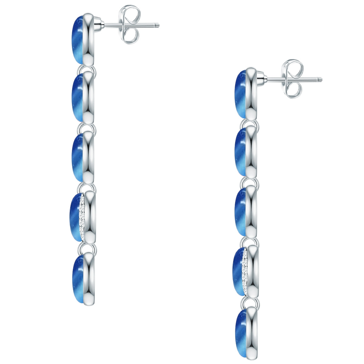 Ohrhänger verziert mit Kristallen von Swarovski® weiß Katzenauge blau
