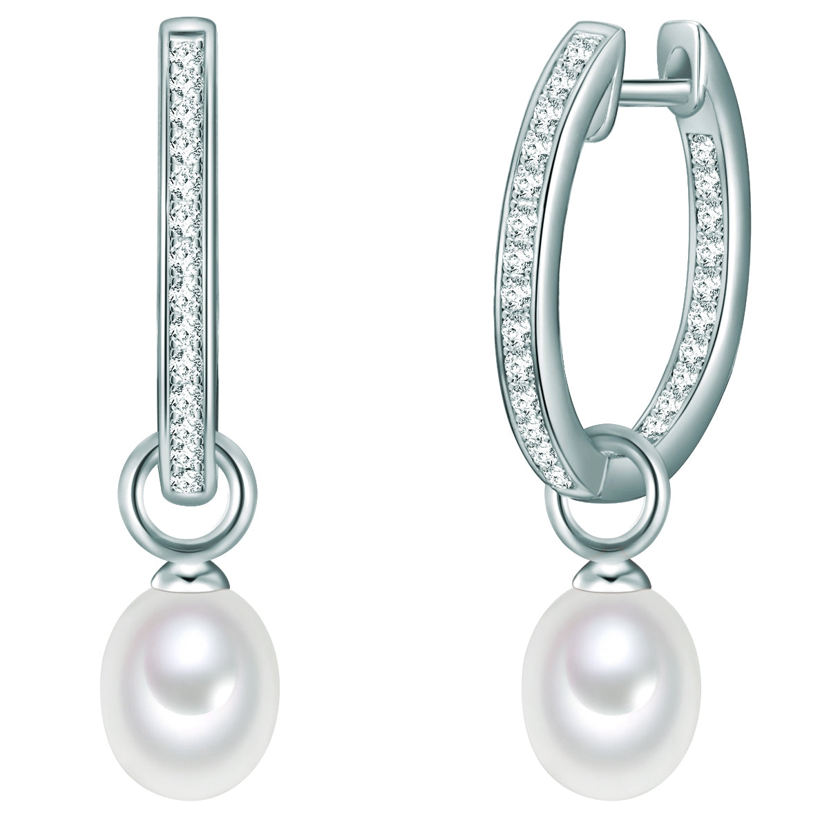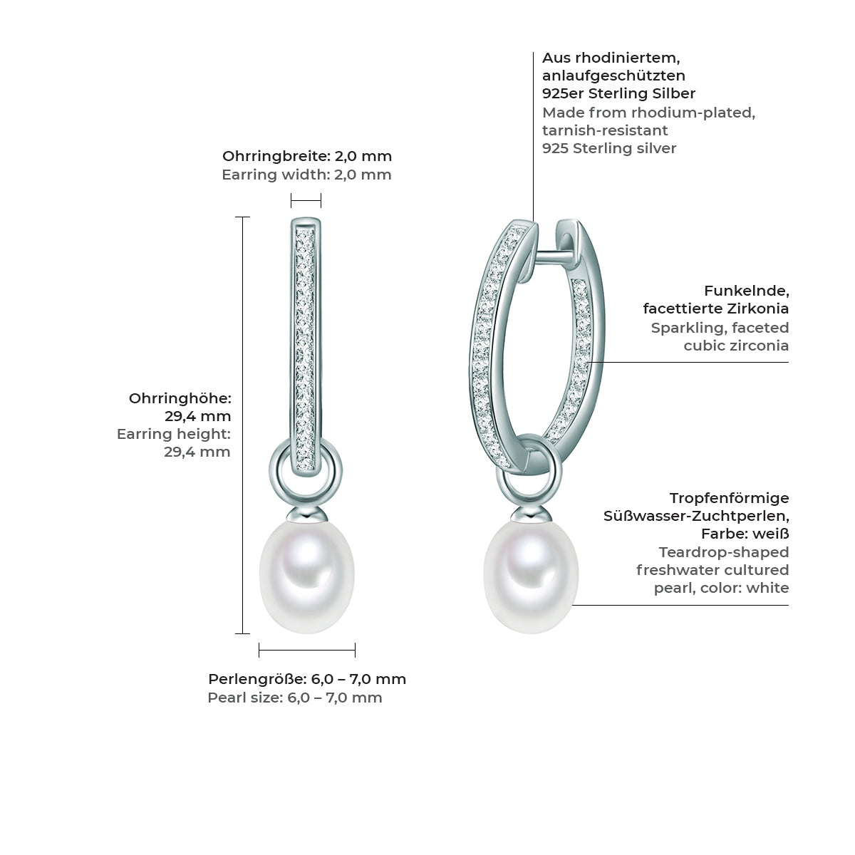 Creolen Sterling Silber Süßwasser-Zuchtperle weiß Zirkonia weiß