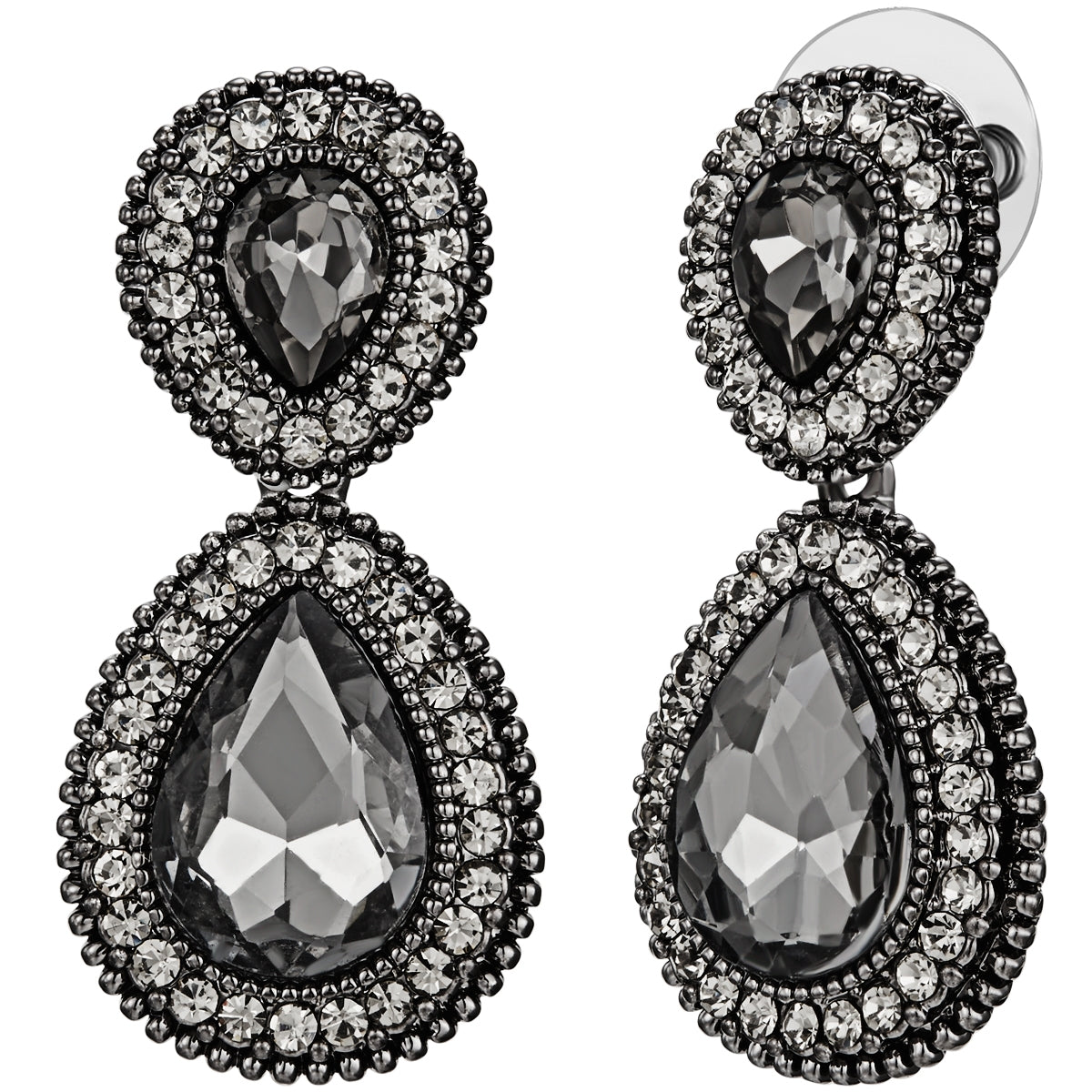 Ohrhänger schwarz Glaskristall grau