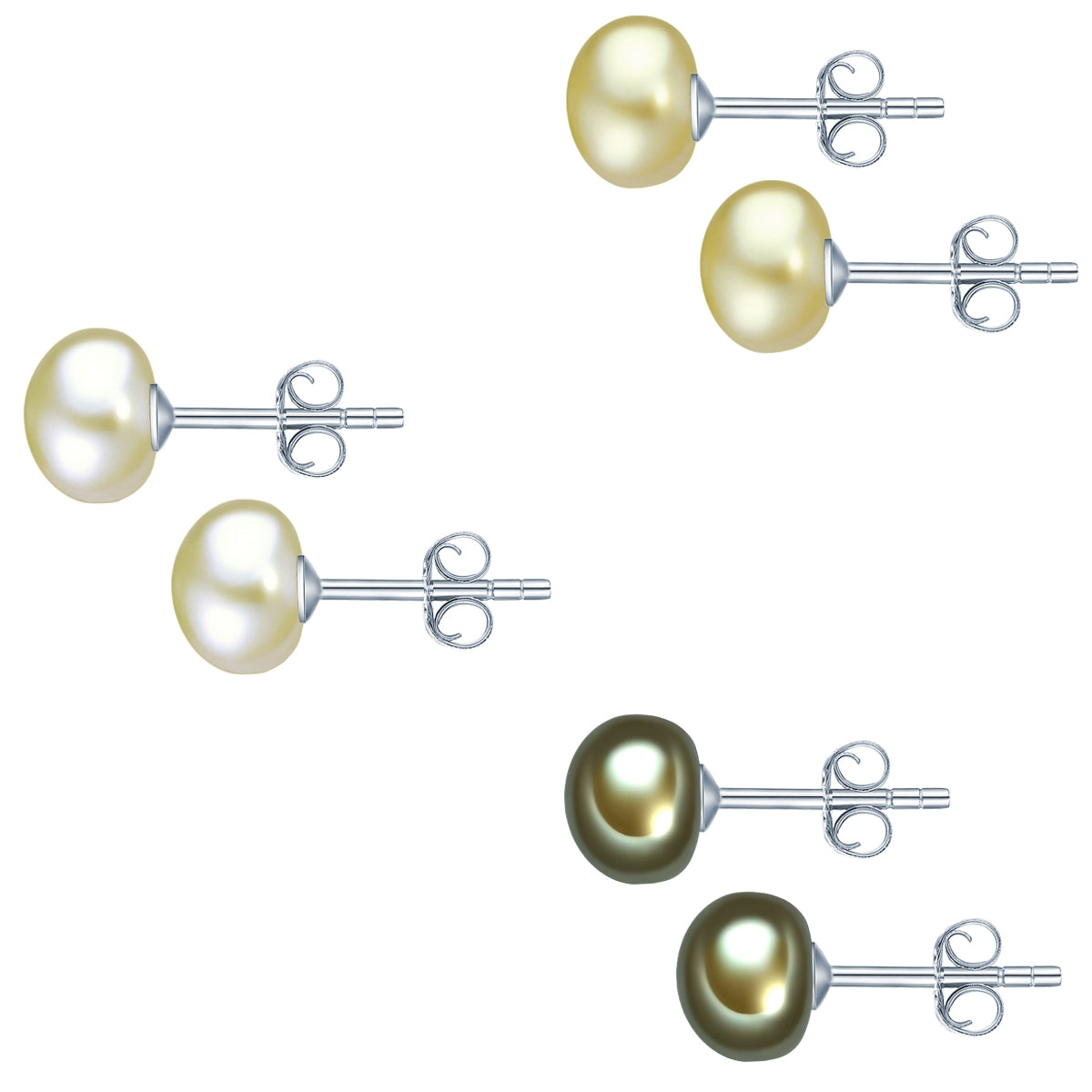 3er Set Ohrstecker Sterling Silber Süßwasser-Zuchtperle grün