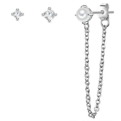 3er Set Ohrstecker tri-Color Glaskristall weiß