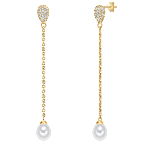 Ohrhänger Sterling Silber gelbgold Süßwasser Zuchtperle weiß Zirkonia weiß