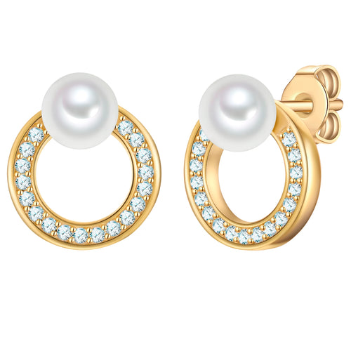 Ohrstecker Sterling Silber gelbgold Muschelkernperle weiß Zirkonia weiß