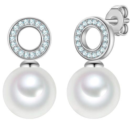 Ohrstecker Sterling Silber Muschelkernperle weiß Zirkonia weiß