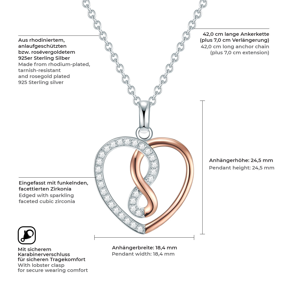 Kette mit Anhänger Sterling Silber bi-Color Zirkonia weiß