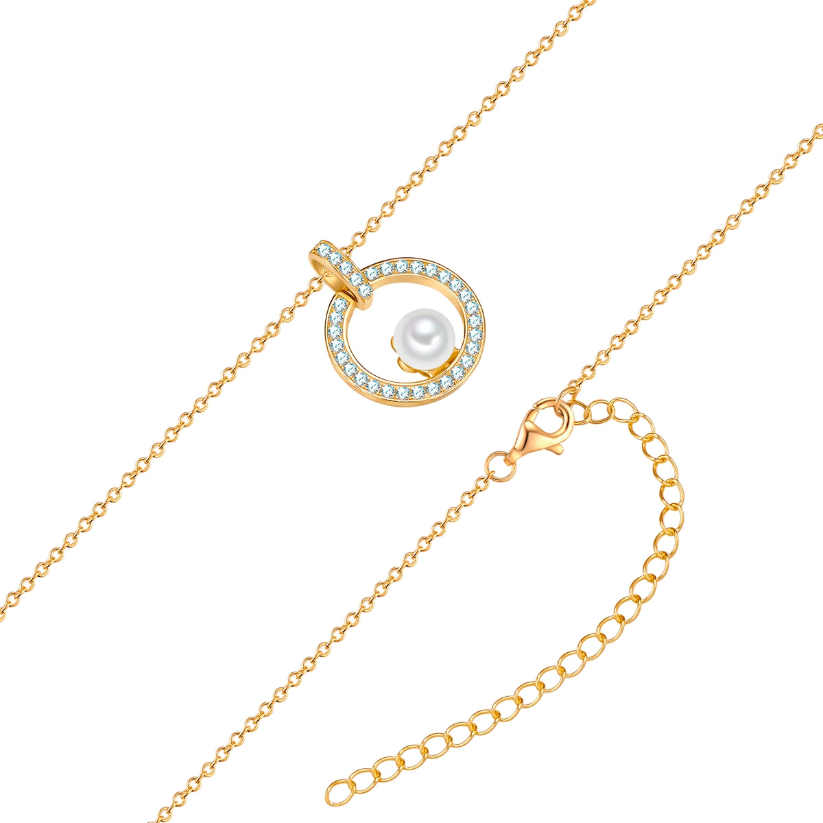 Kette mit Anhänger Sterling Silber gelbgold Muschelkernperle weiß Zirkonia weiß