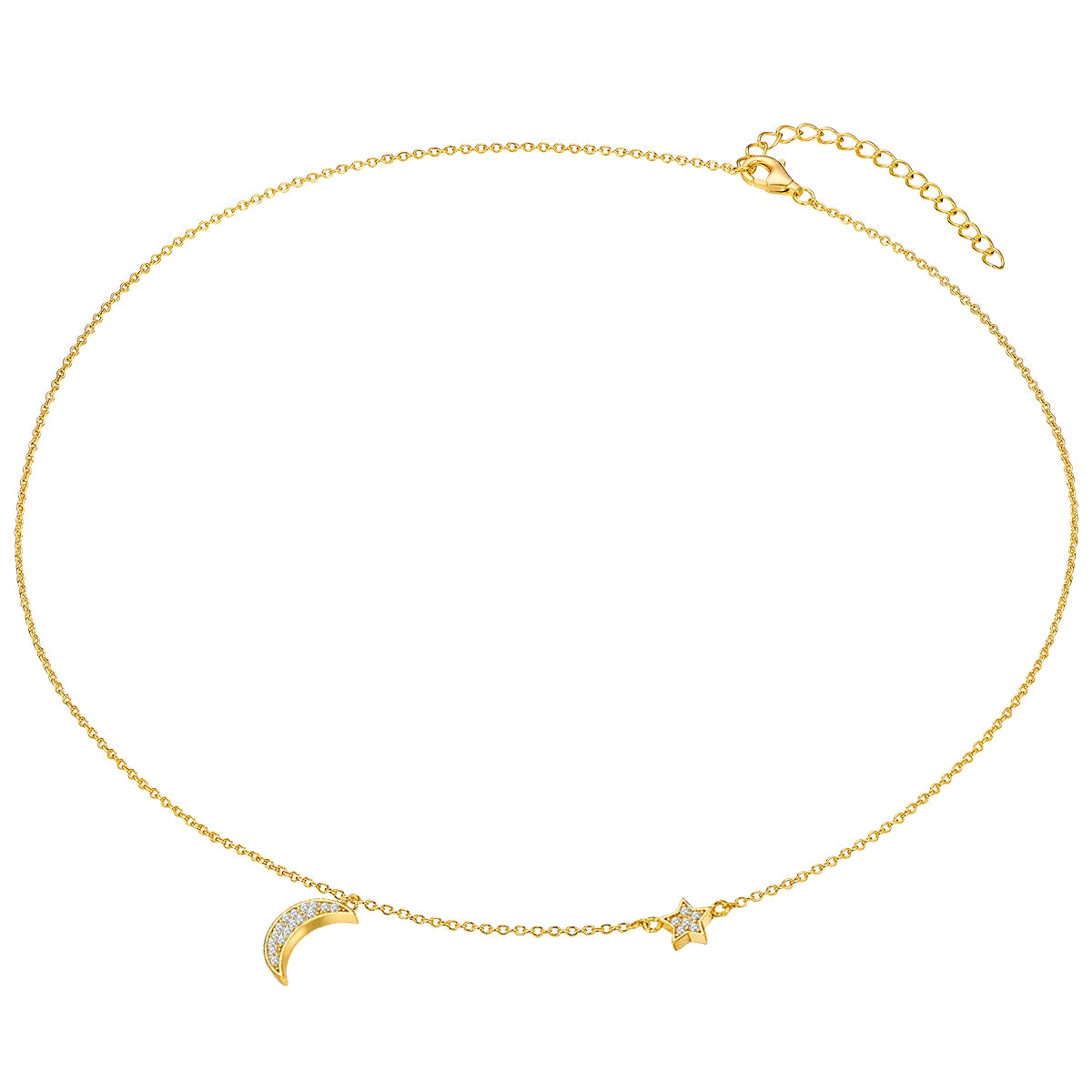 Kette mit Anhänger Sterling Silber gelbgold Zirkonia weiß