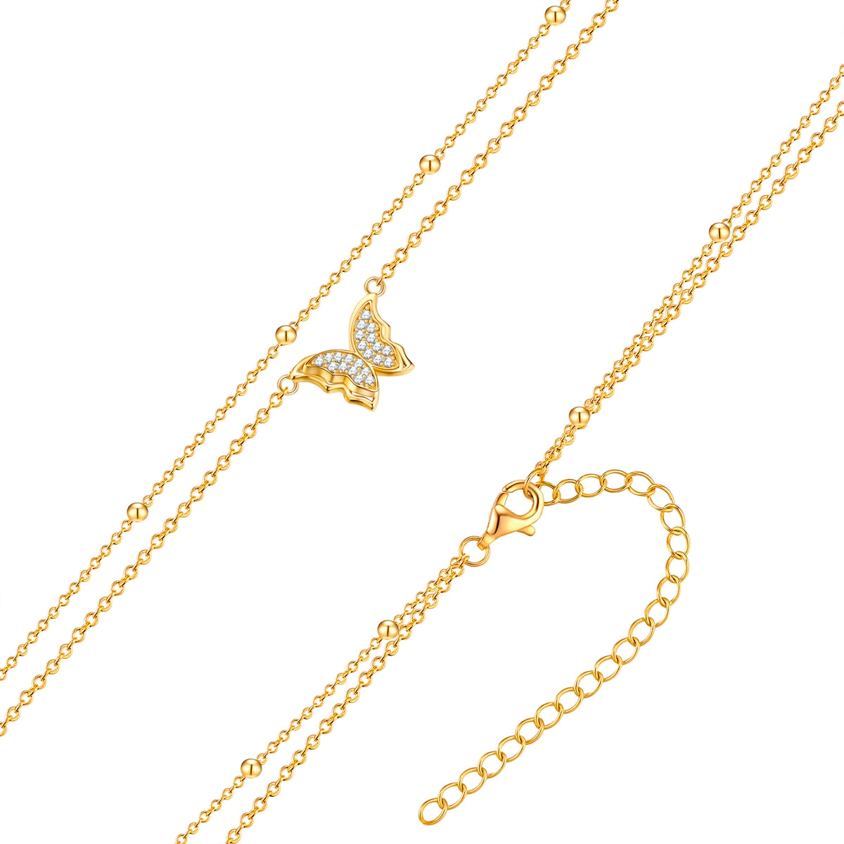 Kette mit Anhänger Sterling Silber gelbgold Zirkonia weiß