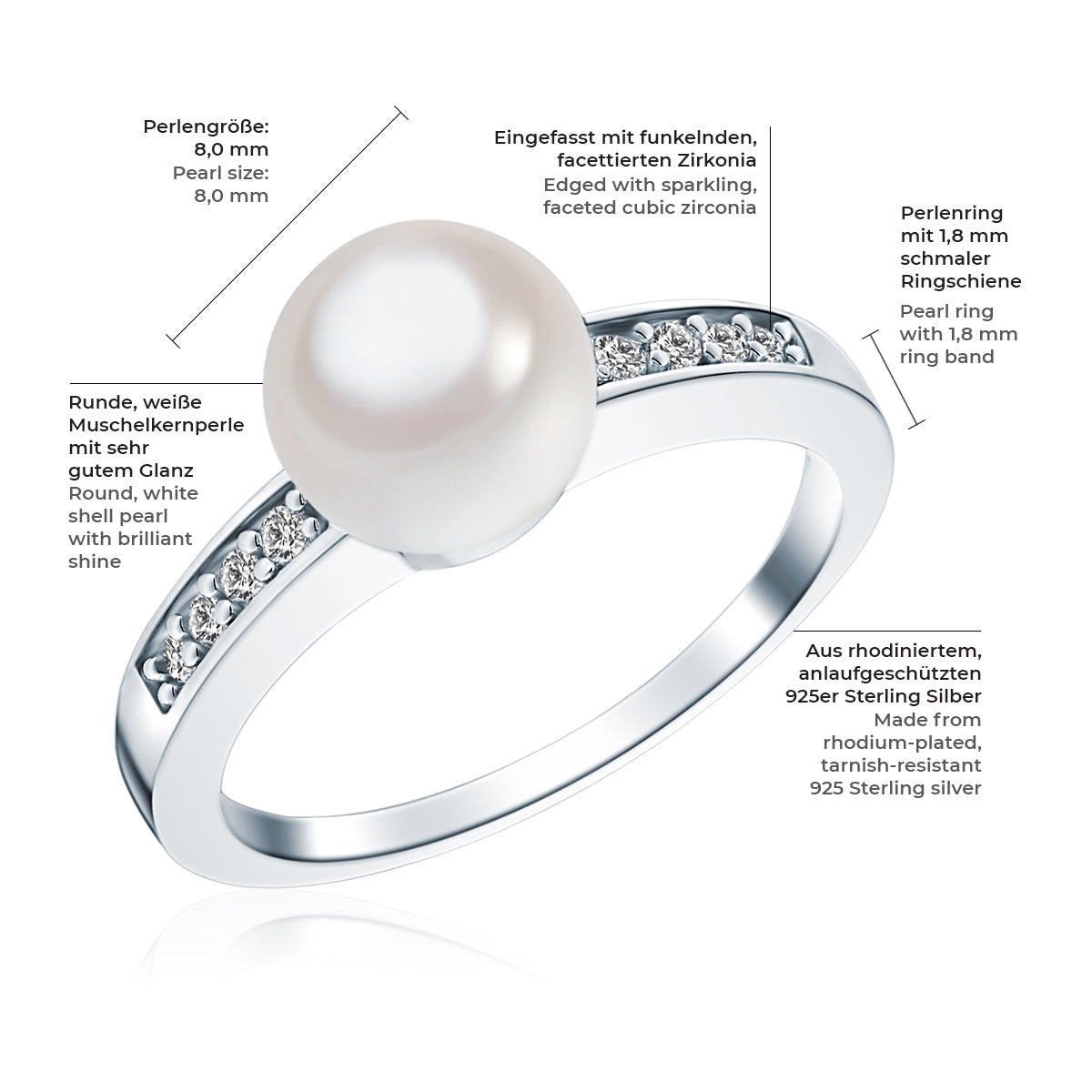 Ring Sterling Silber Südsee-Muschelkernperle weiß Zirkonia weiß