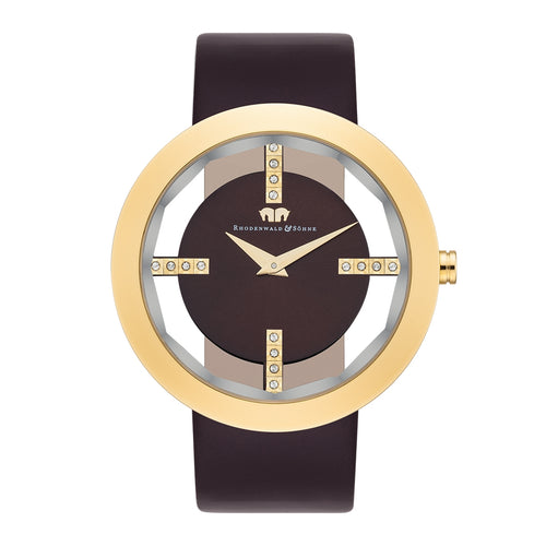 Damen Quarzuhr gelbgold Echtleder dunkelbraun
