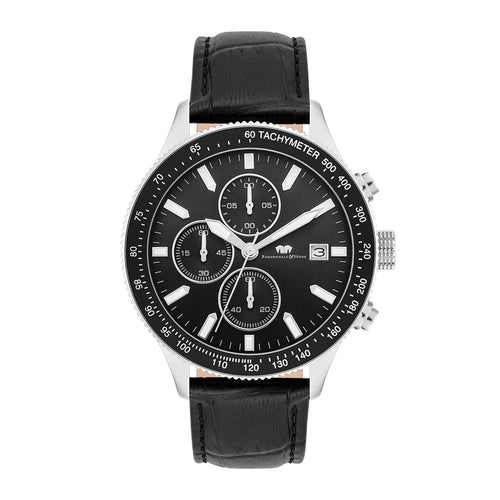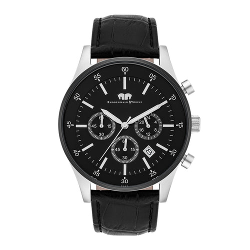Herren Chronograph silber/schwarz Echtleder schwarz