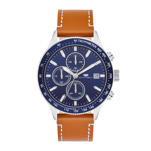Herren Chronograph silber Echtleder braun