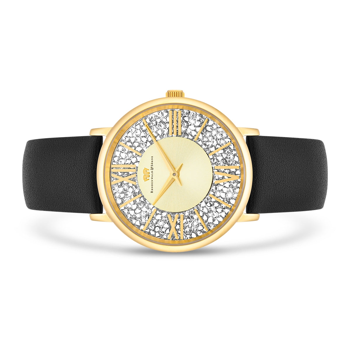 Damen Quarzuhr gelbgold Echtleder schwarz