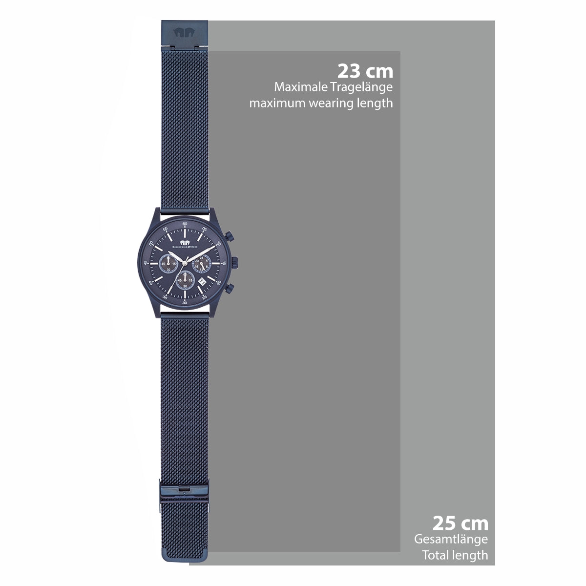 - Zifferblatt (Display): Datum/24-Stunden-Anzeige/Stopp-Uhr/Total
