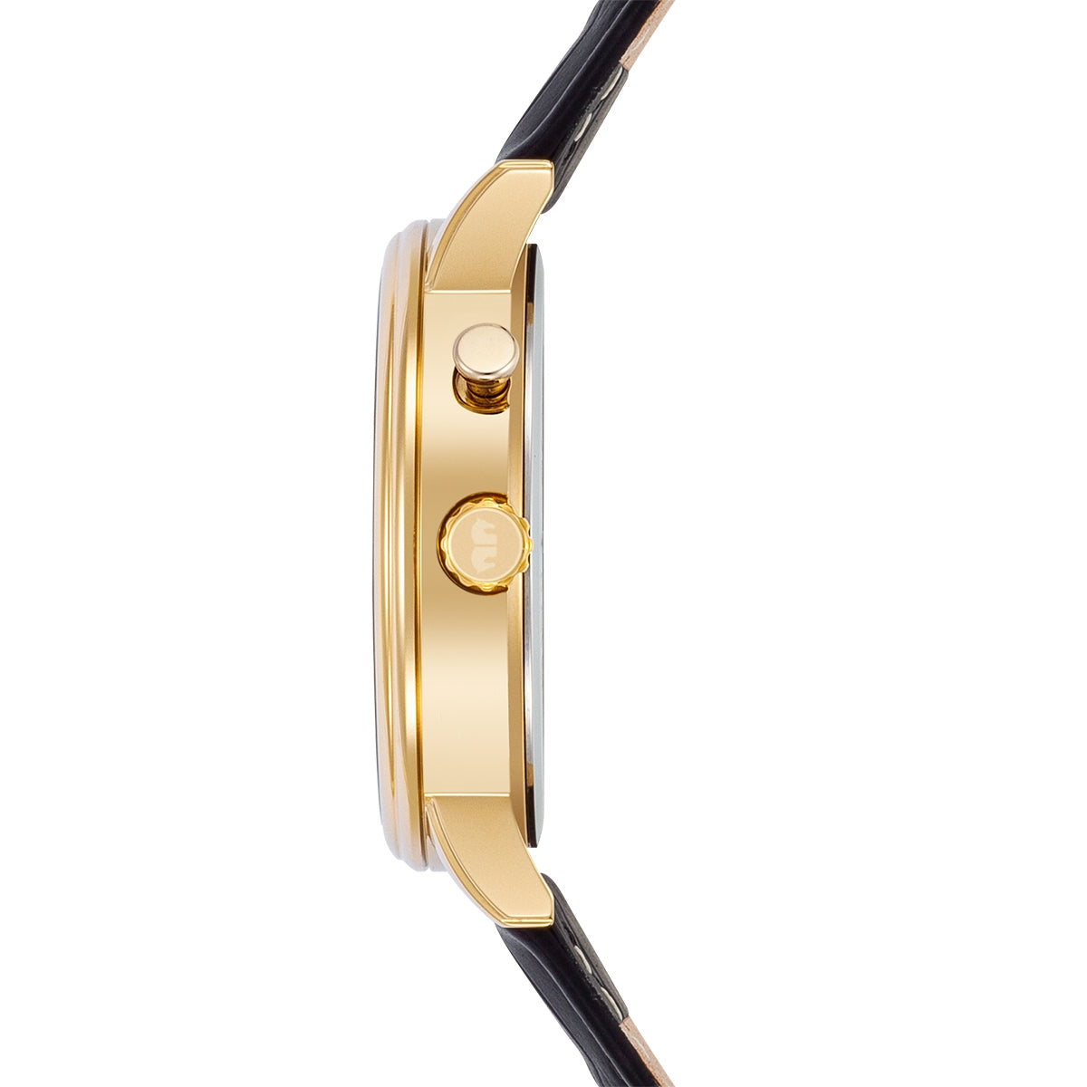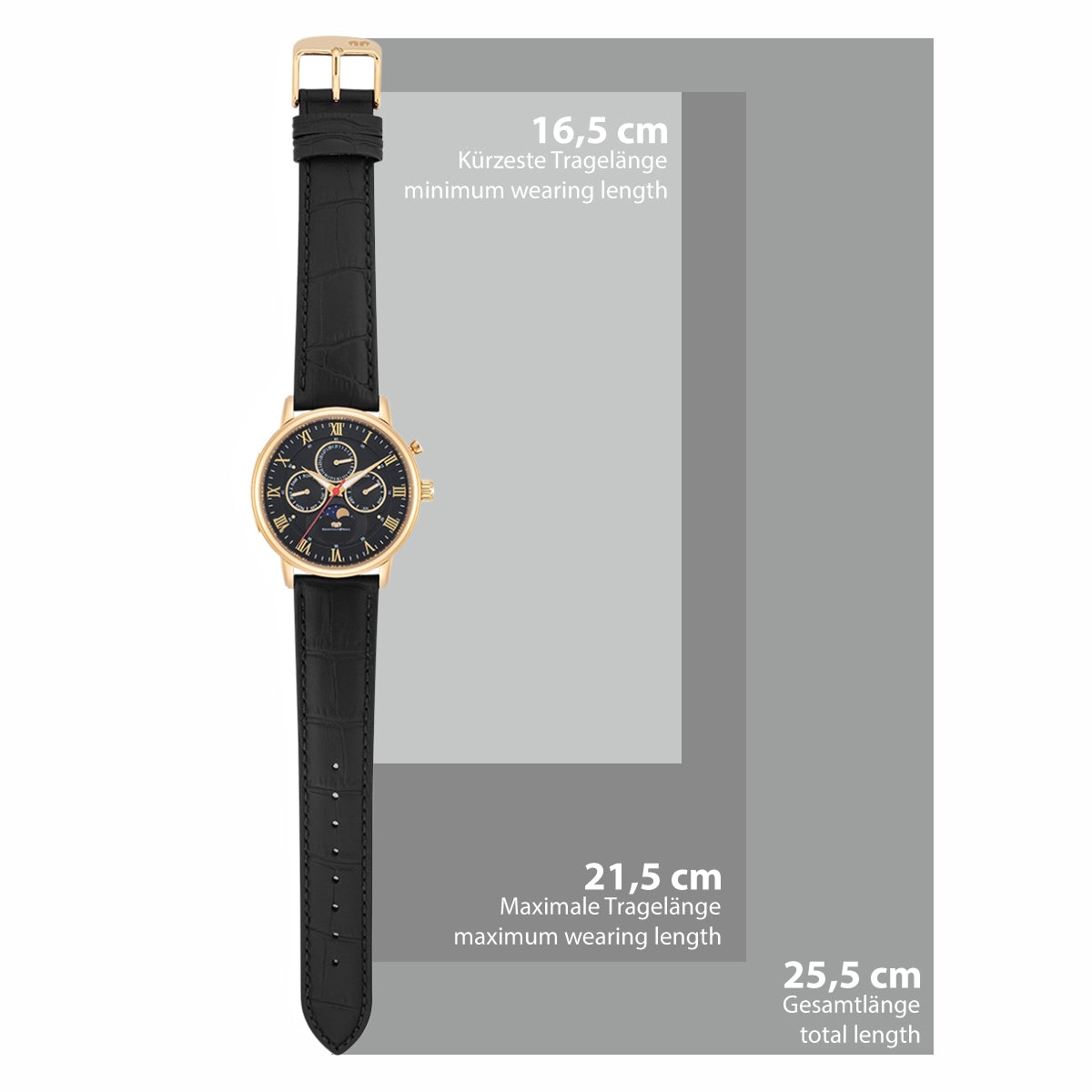 Herren Multifunktionsuhr gelbgold Echtleder schwarz