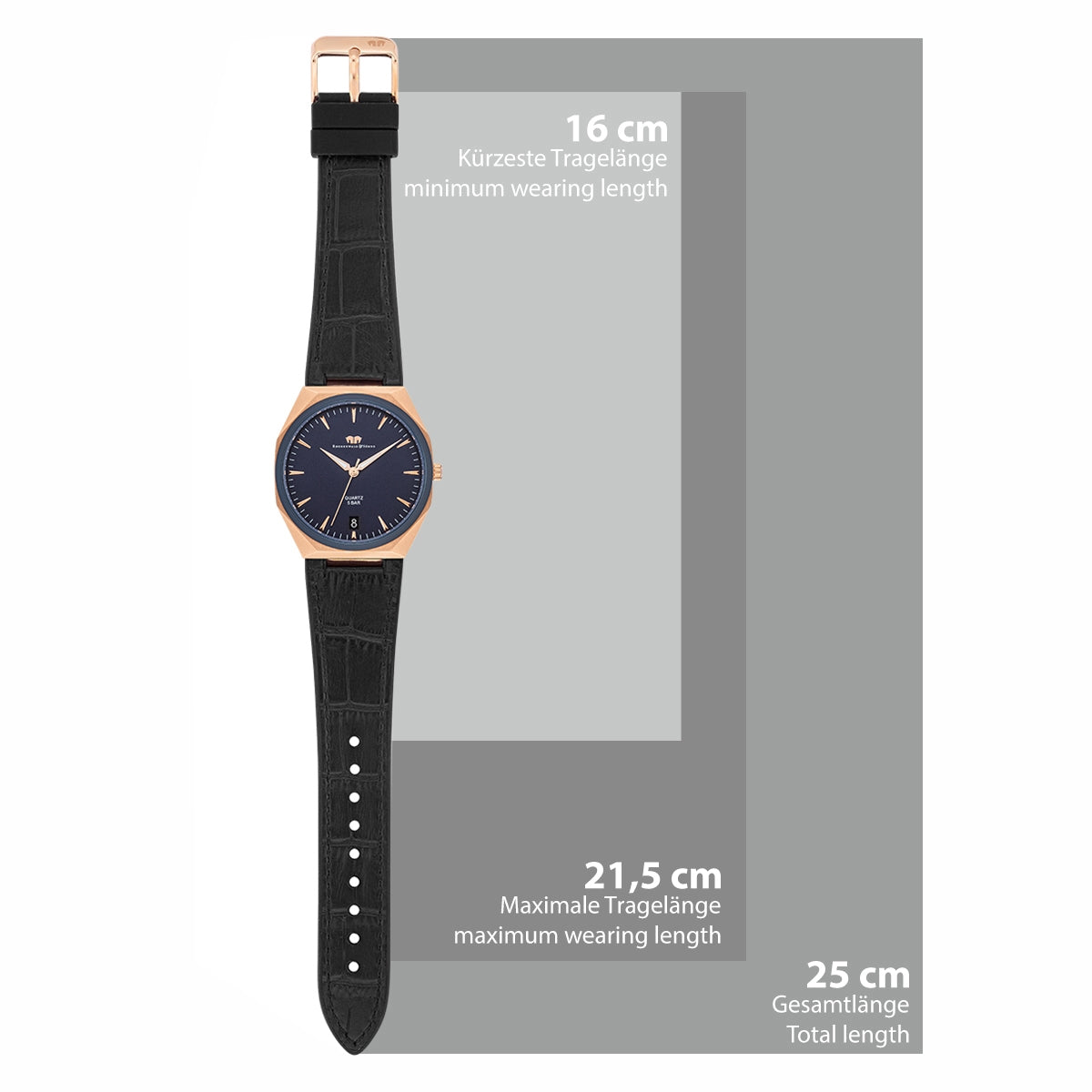 Herren Quarzuhr roségold Echtleder/Silikon schwarz