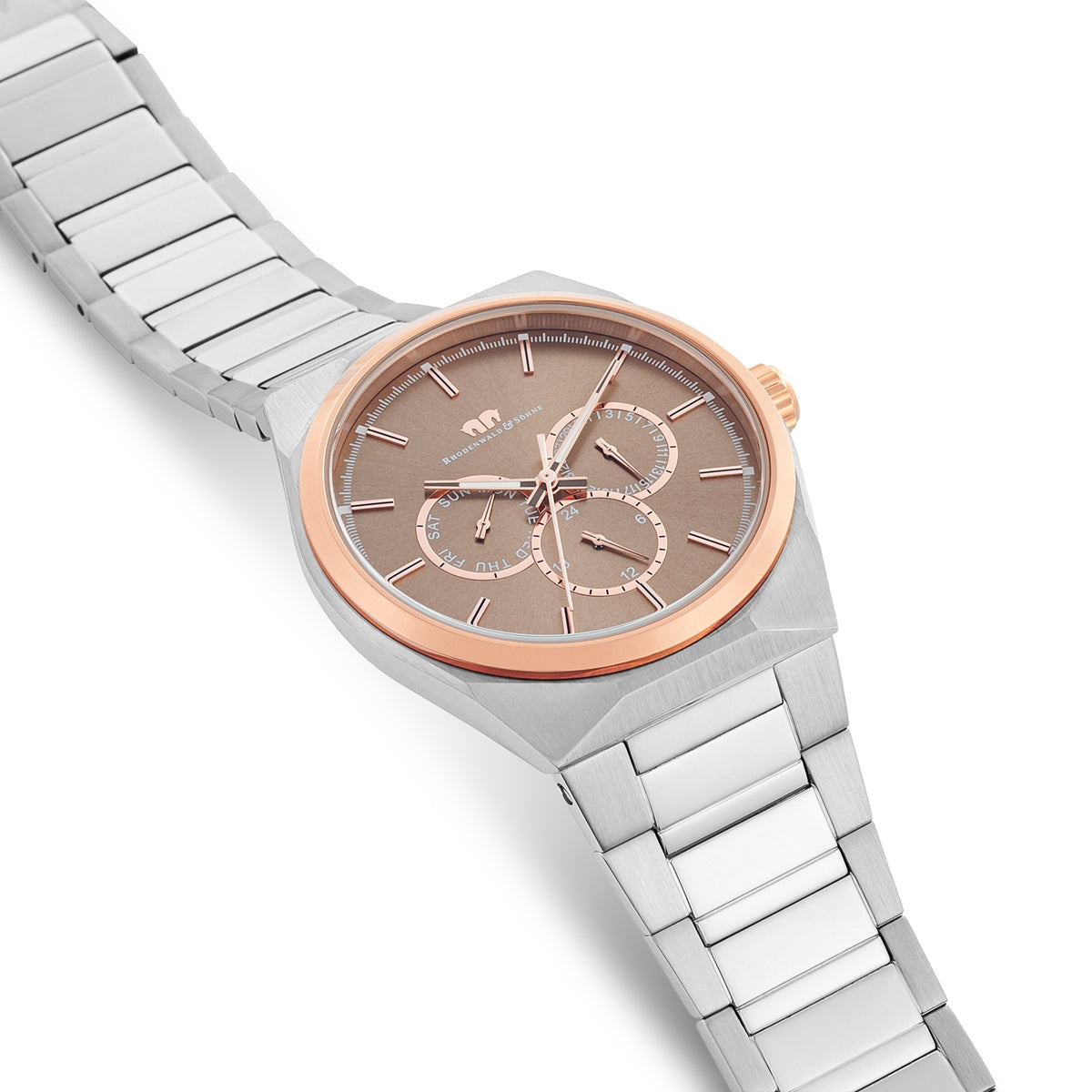Herren Quarzuhr roségold/silber Edelstahl silber