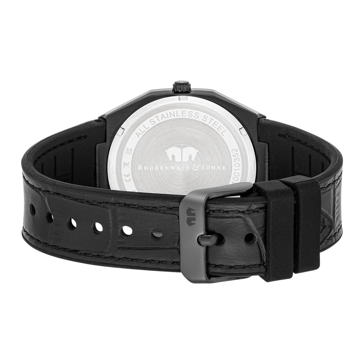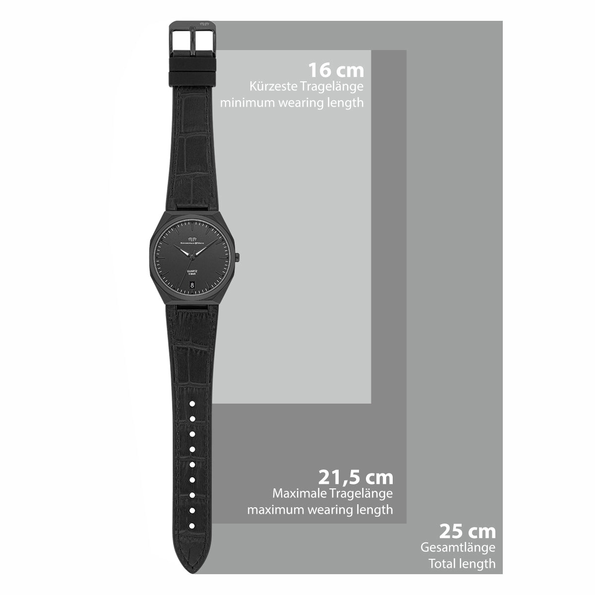 Herren Quarzuhr schwarz Echtleder/Silikon schwarz