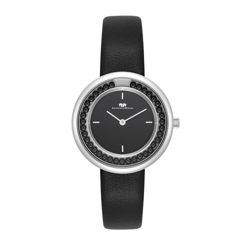 Damen Multifunktionsuhr gelbgold Echtleder schwarz