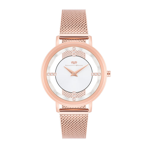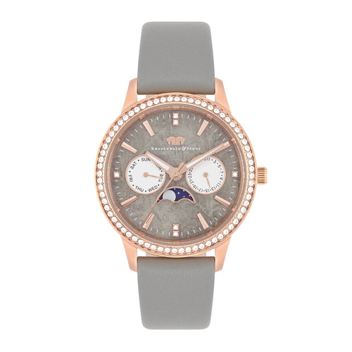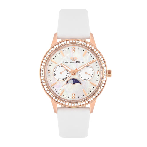 Damen Multifunktionsuhr roségold Echtleder weiß