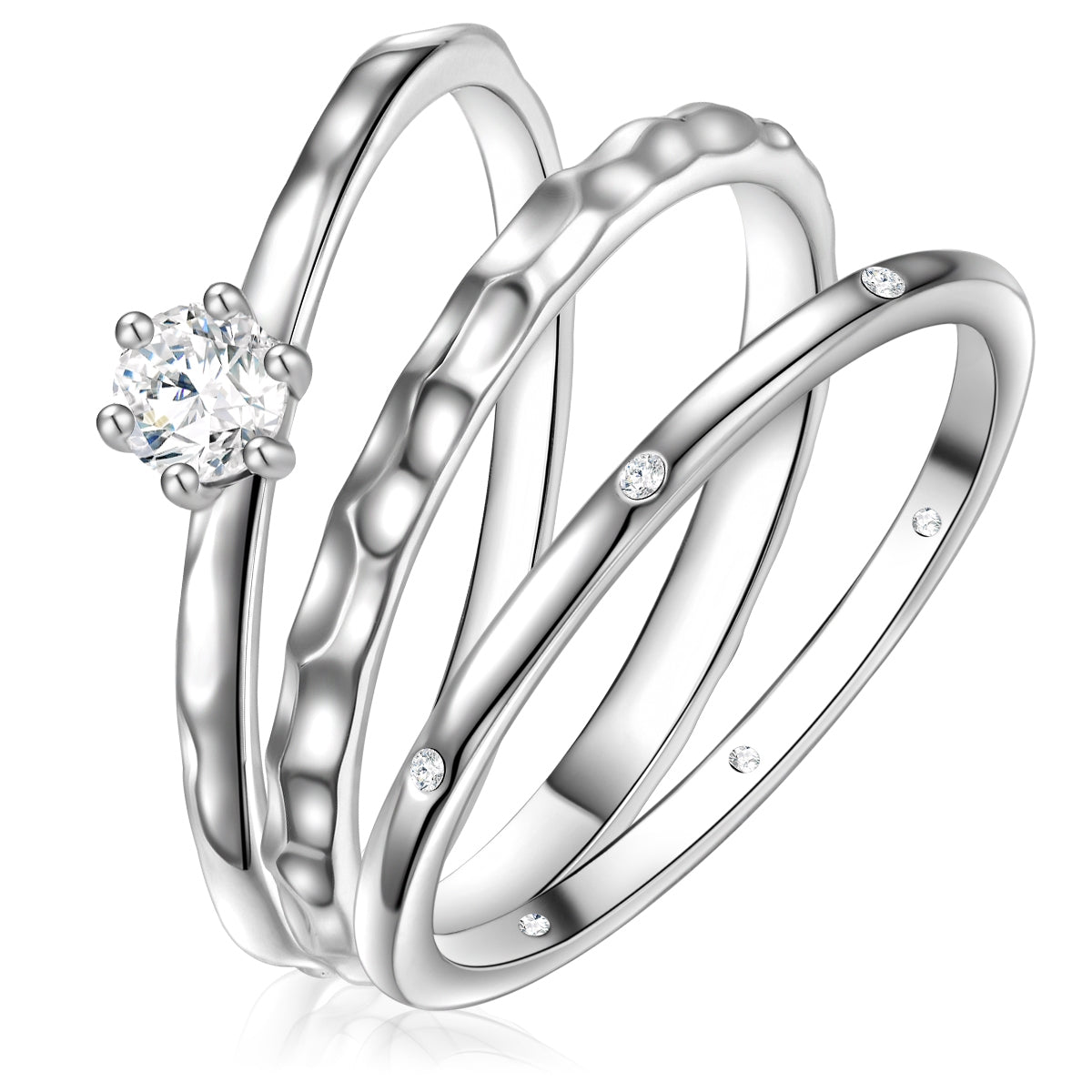 3er Set Ringe Sterling Silber Zirkonia weiß