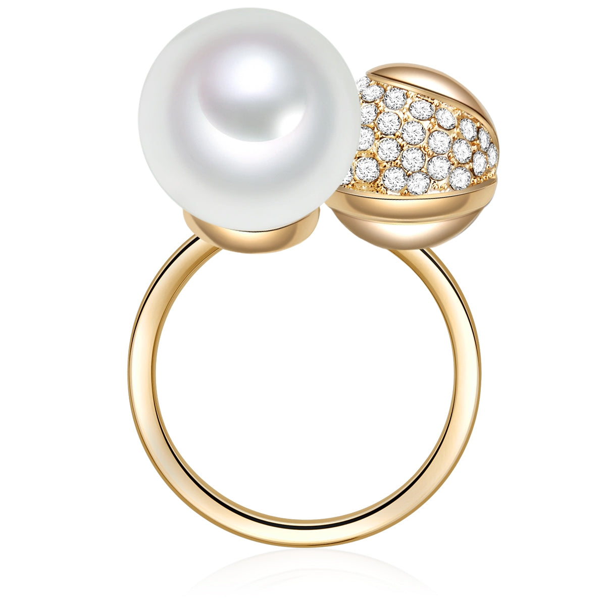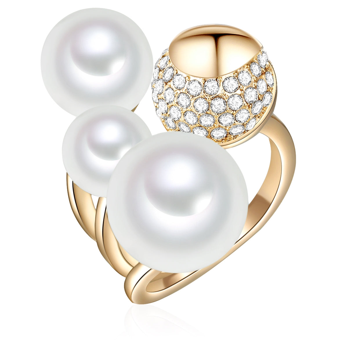 Ring gelbgold Muschelkernperle weiß Zirkonia weiß