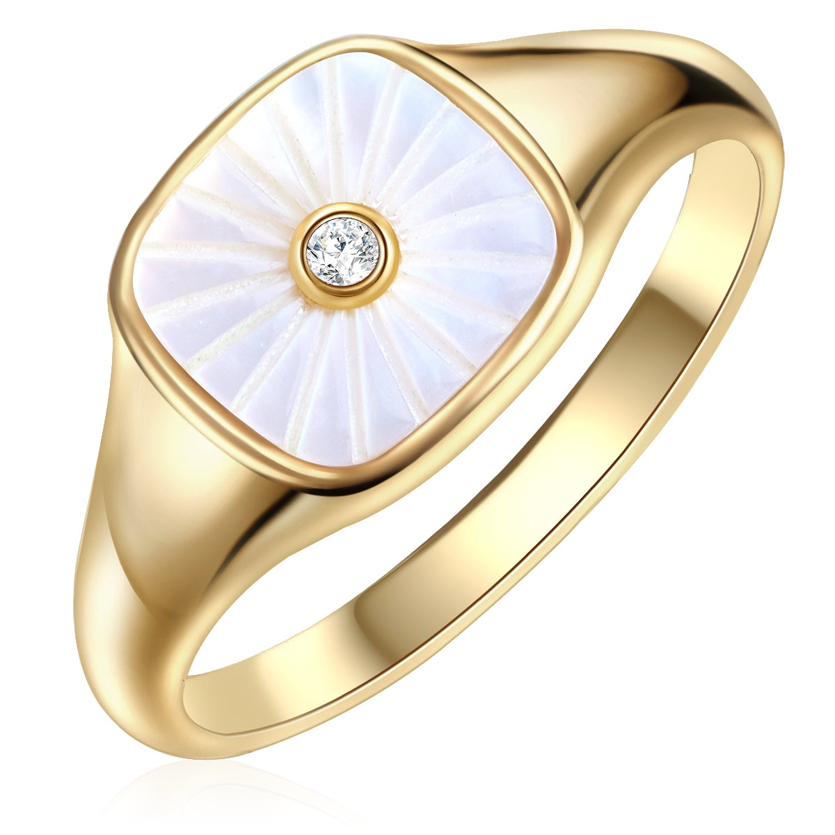 Ring Sterling Silber gelbgold Perlmutt Zirkonia weiß