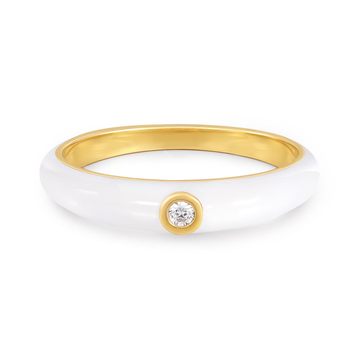 Ring Sterling Silber gelbgold Zirkonia weiß Emaille weiß