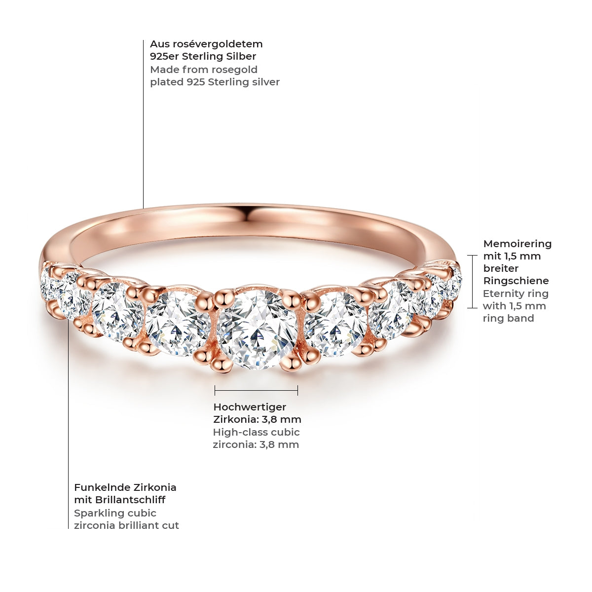 Ring Sterling Silber roségold Zirkonia weiß
