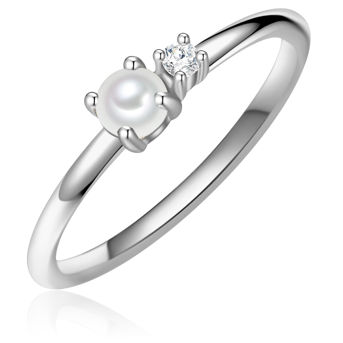 Ring Sterling Silber Süßwasser-Zuchtperle weiß Zirkonia weiß
