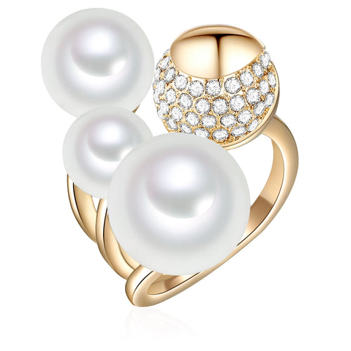 Ring gelbgold Muschelkernperle weiß Zirkonia weiß